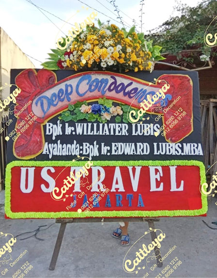 Karangan papan bunga model Jakarta untuk acara dukacita (deep condolences) di kota Medan