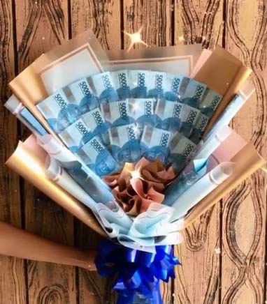 Rangkaian buket bunga uang 50 ribu, cocok diberikan kepada seseorang yang spesial atau orang yang di sayangi