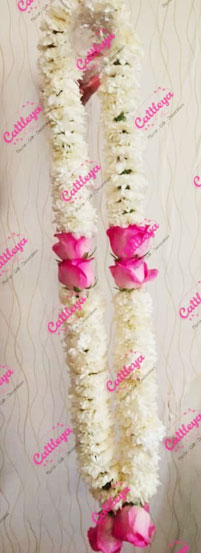 Rangkaian bunga kalung penyambutan tamu dalam suatu acara penting. Di rangkai menggunakan bahan bunga melati segar dan wangi