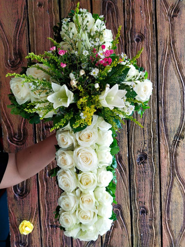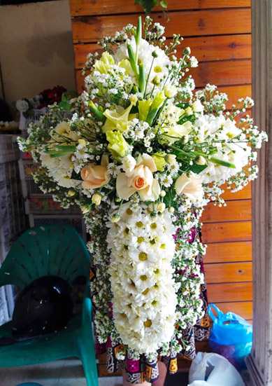 Di tinggalkan orang yang sangat dikasihi adalah hal yang sangat berat di hadapi seorang manusia, namun hal tersebut adalah kuasa Tuhan. Dalam acara di rumah duka, dekorasi bunga dukacita yang cantik membuat suasana ruangan duka menjadi lebih rapi dan merupakan penghormatan terakhir untuk orang yang sudah meninggal dunia. Untuk agama Kristen, rangkaian bunga salib juga dirancang pada dekorasi acara dukacita. Kami menerima pemesanan rangkaian bunga salib dengan hasil rangkaian cantik dengan harga yang sangat terjangkau. Hubungi kami untuk informasi dan harga.