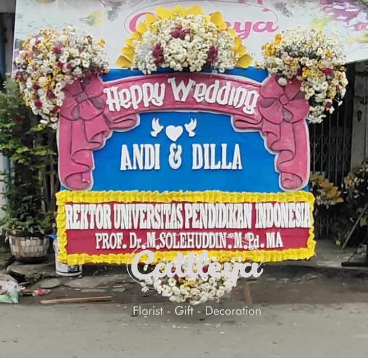 Karangan papan bunga model Jakarta ukuran 200 cm x 150 cm dengan paduan mahkota bunga segar di 4 titik