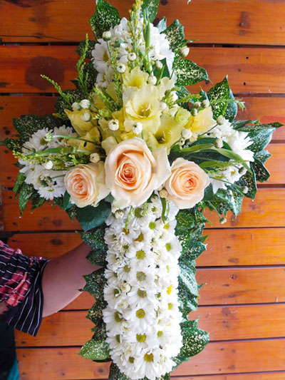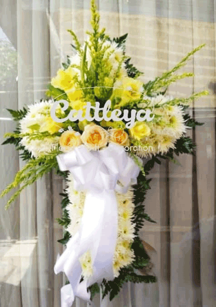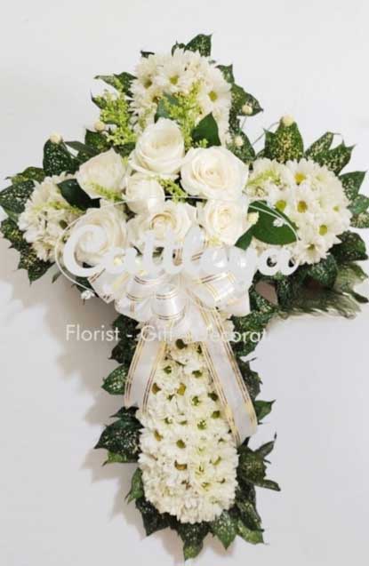 Rangkaian bunga ini biasanya dipesan untuk acara dukacita yaitu meninggal dunia bagi agama Kristen. Bunga ini dirangkai dengan memadukan bunga segar dan pita cantik yang bertuliskan kalimat duka. Untuk anda yang mau pesan bunga salib dengan harga murah dan cepat di Medan maupun luar kota, hubungi kami sekarang juga!